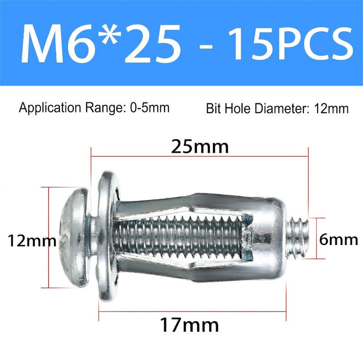 M4/M5/M6 Hollow Wall Anchors — Secure Fixing on Thin Panels (25/50/100 PCS)