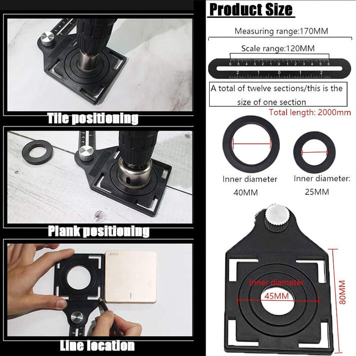 Comes with a 3-hole positioning template (25mm, 40mm, 45mm) for accurate tile, plank, or wood drilling. Ideal for carpenters and tile installers needing clean, consistent hole alignment.
